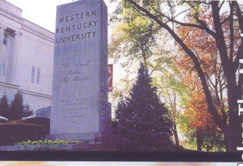 西肯塔基大学坐落在肯塔基州的Bowling Green,该市拥有五万名人口,位于肯塔基州的路易斯威尔(Louisville, Kentucky)以南约110 英里,田纳西州的那旭威里(Nashville, Tennessee)以北61 英里。WKU 座落在山顶俯瞰Bowling Green 市,被誉为全美最漂亮的校园之一。美国通用汽车的Corvette 工厂和国立Corvette 博物馆就位于Bowling Green。